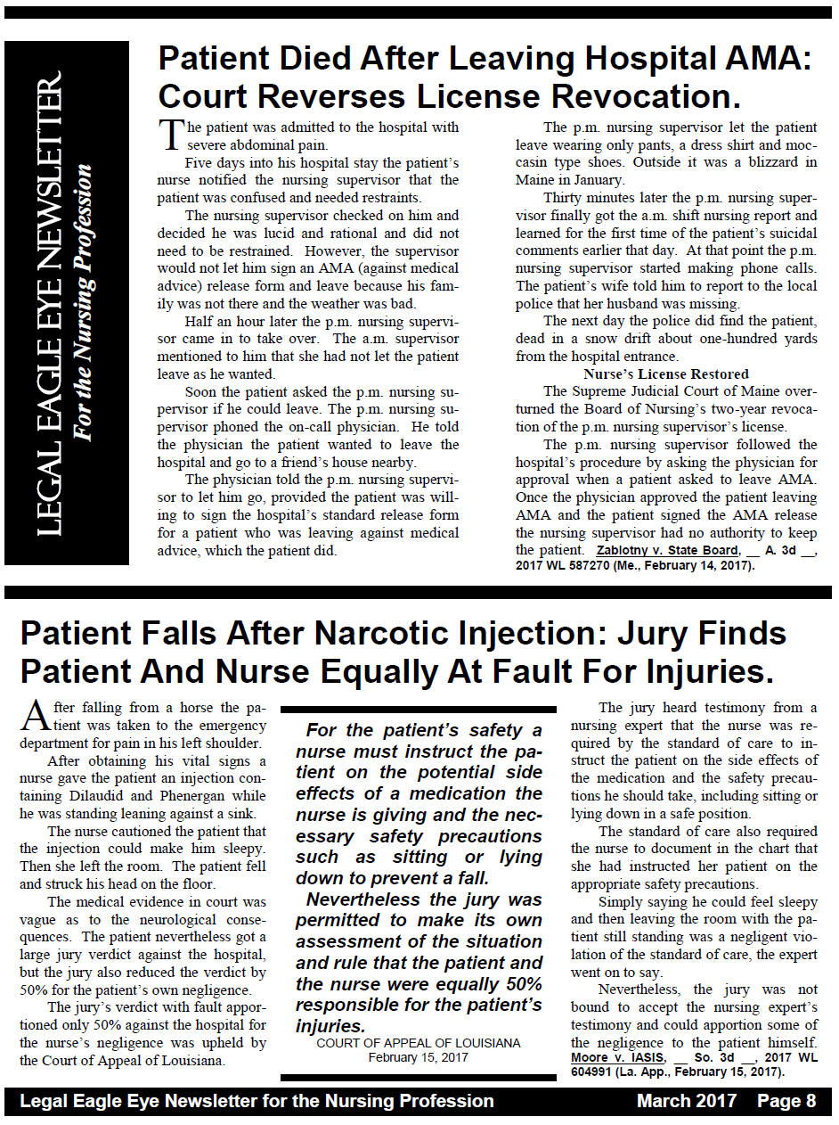 Legal Eagle Eye Newsletter for the Nursing Profession