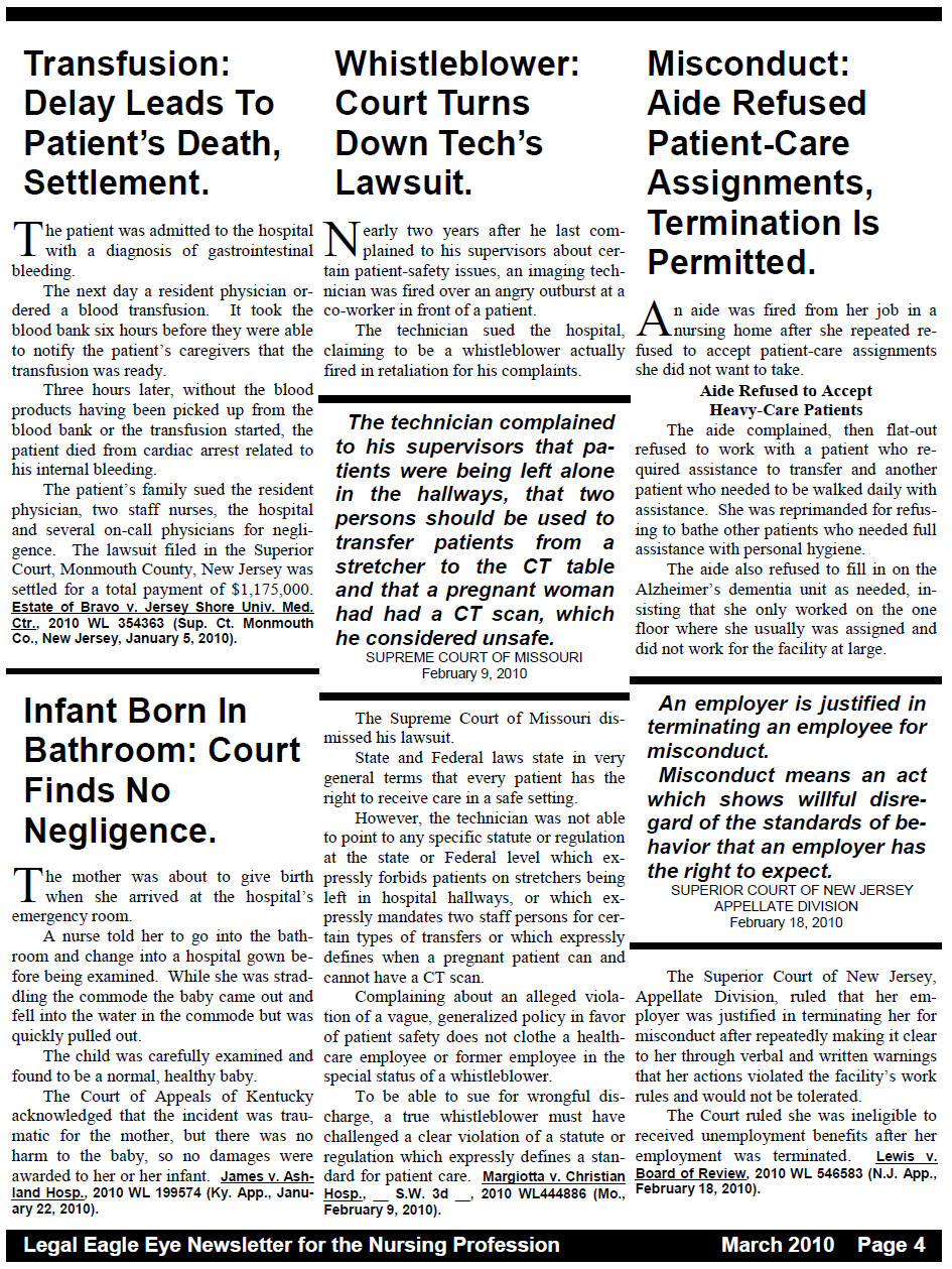 LEGAL EAGLE EYE NEWSLETTER For the Nursing Profession Request a complimentary copy of our current newsletter What is our mission? What publication formats are available? How do I start a subscription? Can I cancel and get a refund? Does my subscription renew automatically? |