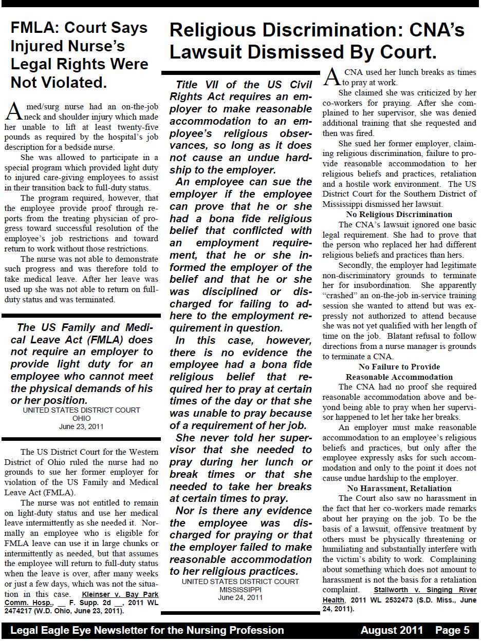 LEGAL EAGLE EYE NEWSLETTER For the Nursing Profession Request a complimentary copy of our current newsletter What is our mission? What publication formats are available? How do I start a subscription? Can I cancel and get a refund? Does my subscription renew automatically? |